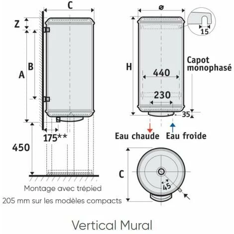 Gewicht (kg) 26 Garantie (Jahre) 5 Jahre Fassungsvermögen des Behälters (l) 50 Leistung (w) 1200 Spannung (v) 230 Mono Aufheizzeit 4h10 Durchmesser (mm) 505 Höhe des Behälters (mm) 690 Menge des Trinkwassers bei 40° in Litern 137